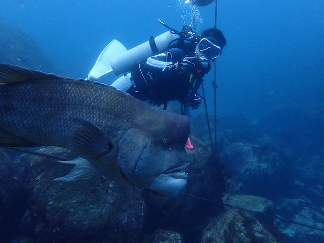 イサキの群れ、タカベの群れ、コブダイ、ブダイ、