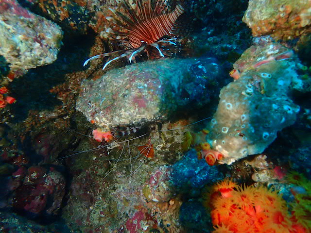 キンギョハナダイ、コイボウミウシ、ニシキウミウシ、イサキ、タカベ、クエ、ミノカサゴ、オトヒメエビ