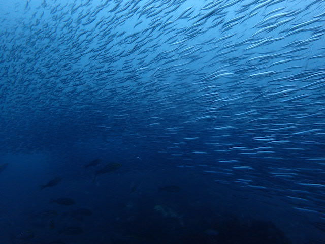 サキシマミノウミウシ、キビナゴ、イサキ 流れもすごく渦になってました